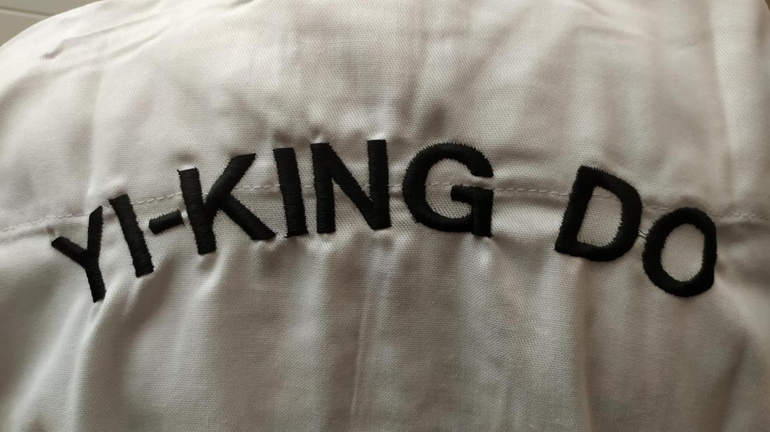 Yi-King Do embroidery on the back and embroidered logo on the front left
